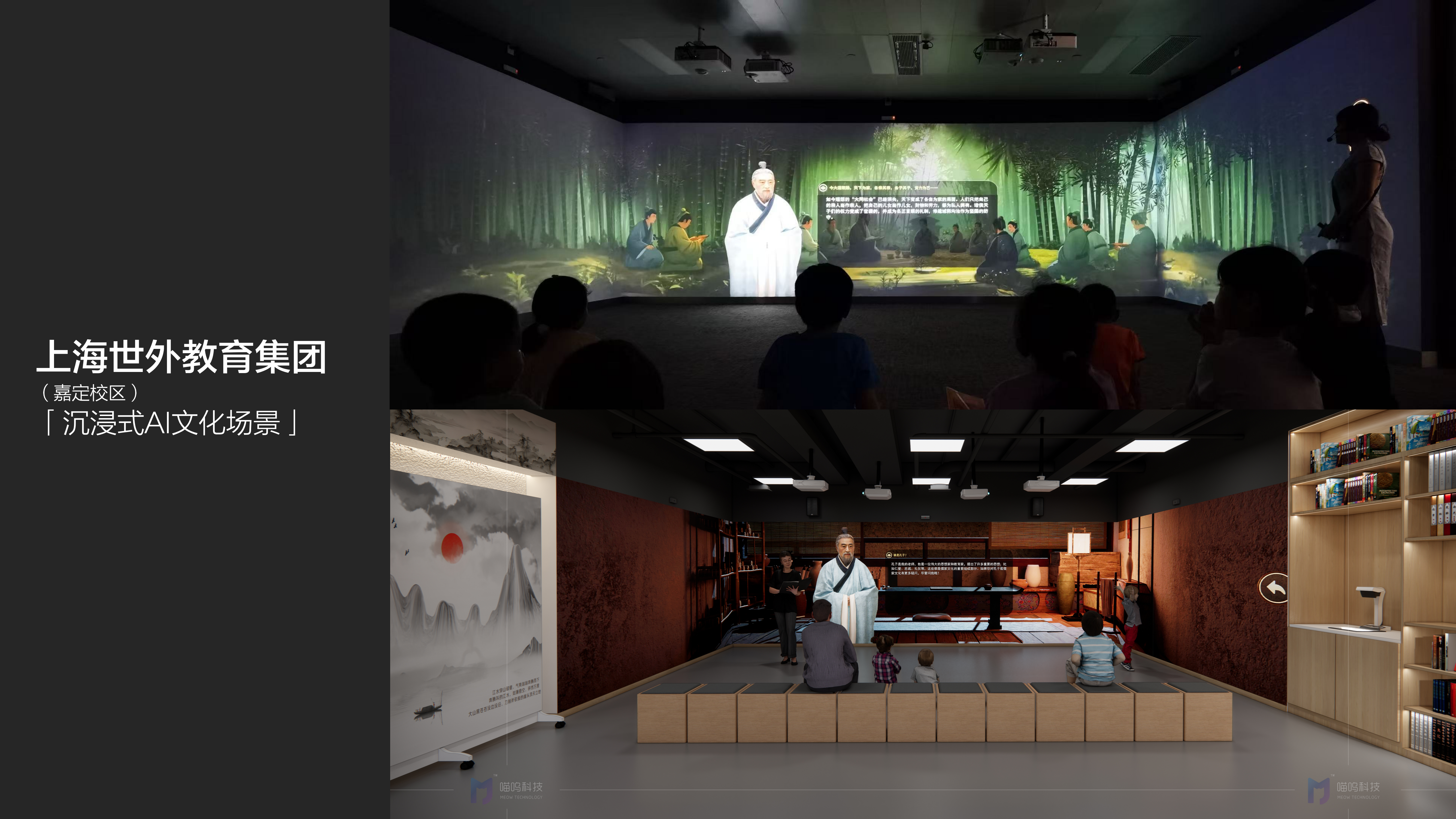 未来学习空间以沉浸式CAVE显示系统和Al 交互为核心,将AI课程生成、场景控制、多模态交互三大引擎融合集成的智能化学习场景系统。借助场景化体验式学习方式,以各学科课程标准为教学功能设计依据,可支持学校“教、学、研、培、展”等多种应用场景需求。充分挖掘现有场地和设施设备的育人价值,充分满足学生多样化学习的需求,充分支持数字化学习场景创设,深入构建“学科学习融合化、实践探究情境化、能力迁移综合化”的学习新样态。